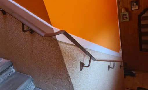 Rénovation d'un garde-corps acier peint noir sur escalier en bois à St-Jean sur Veyle